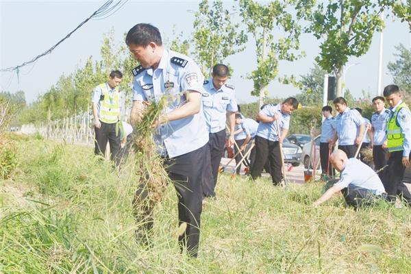 当天下午,周口港区公安分局局长何学民带领班子成员及全体民警、辅警头顶骄阳对卫生区域进行彻底清扫,清除绿化带里的杂草(如图)、垃圾,清理卫生死角,坚决打赢“创卫”攻坚战。