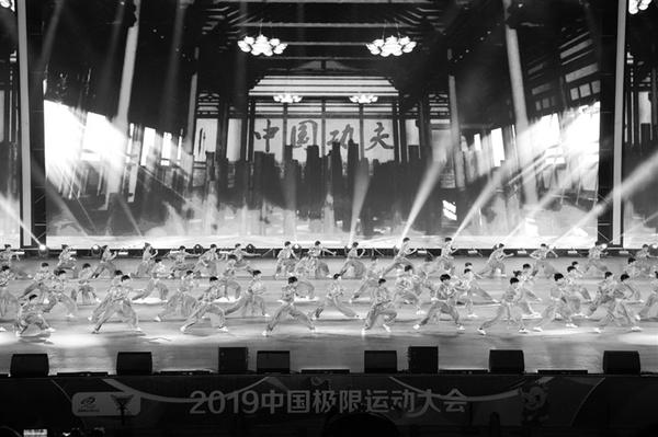 8月18日,演员在开幕式上进行文艺表演。 当日,2019年中国极限运动大会开幕式在河南省濮阳市清丰县举行。新华社发
