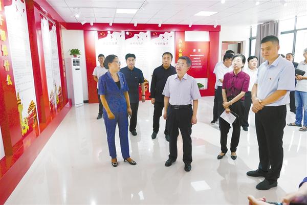 皇甫立新首先来到槐店回族镇海楼社区。海楼社区位于县城中心,是全县政治经济文化中心。走进社区,路两旁红旗飘飘,新时代、新思想、新目标、新征程等具有时代特色的宣传画绘制在两边的墙壁上。社区广场上“百村综合治理办公室”的牌子特别醒目,社区办公室有关百村综合治理的规章制度一应俱全。皇甫立新对海楼社区的工作给予充分肯定,并就工作中存在的问题给予指正,要求社区党支部突出建好、管好、用好村委党员会议室,突出主题,唱响主旋律。