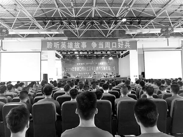 本报讯 (记者 彭慧 文/图) 在硝烟渐远的今天,用心聆听发生在40年前那场战争中的英雄故事,你会深切感受到,他们才是中华民族的脊梁,才是新时期最可爱的人。8月21日下午,秋雨淅沥,在川汇区役前训练基地,为进一步培育“准新兵”的战斗精神,加强“传承红色基因、担当强军重任”主题教育,川汇区人武部邀请“英雄步谈机员”、一等功臣海水干为大家讲述战斗故事,让“准新兵”端正入伍动机,铸牢血性军魂(右图)。