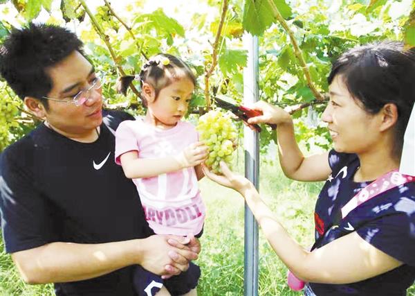 3年前,鹿邑县卫真办事处谷堆洼村的张万印采取“公司+基地+农户”的发展模式,吸收110户村民入股,办起华恩种植专业合作社,带领大家抱团发展,从土里“刨金”。近日,该合作社首年挂果的阳光玫瑰、金手指等优质无公害葡萄喜获丰收,吸引不少人前去采摘、观光(如图)。此外,华恩种植专业合作社还带领群众种植蔬菜、花卉、苗木、中药材,带动200户贫困户走上脱贫致富路。今年,该合作社产值预计达到480万元。