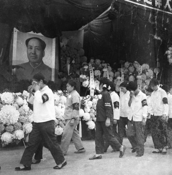 广播喇叭一直转播着中央人民广播电台的节目,哀乐一遍遍响起,回荡在大街小巷、城镇乡村,大家不约而同地佩戴黑纱,自发做白花、扎花圈、写挽联,商店里的白纸和黑布都卖缺了。机关单位的同志在自己布置起来的灵堂里悼念毛主席,学生每天上课之前都向毛主席默哀,工厂里挂起了“继承毛主席遗志,抓革命、促生产”的横幅,农民佩戴着黑纱在田野里劳动。