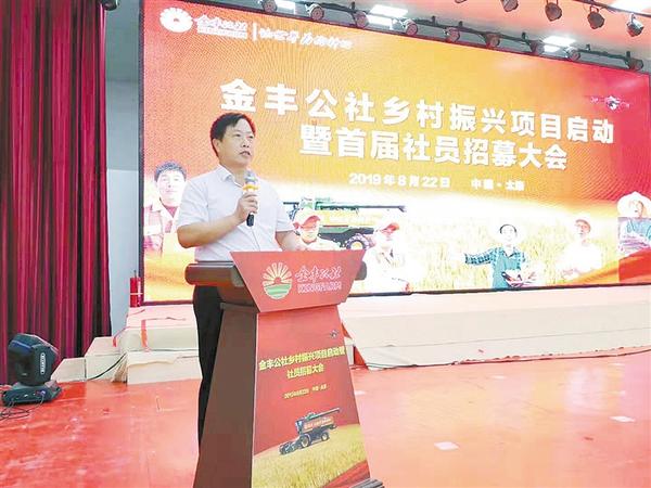8月22日上午,太康金丰公社开业仪式在热烈、喜庆的氛围中举行。该公社将围绕解决农业产前、产中、产后服务,发挥平台优势,汇聚各类资源,建立服务网络,为农民提供托管式、菜单式的综合服务。图为该县农业农村局局长刘东在仪式上致辞。 记者 马治卫 摄