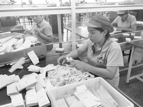 开发区大力推进返乡经济发展,引导在外成功人士回乡创业,带动本地群众就业。图为返乡投资企业赛嘉电子生产车间内,员工正在包装电动牙刷。