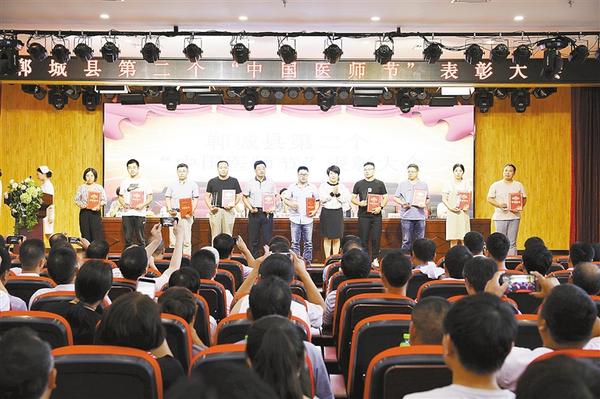 本报讯 (记者 徐松 通讯员 刘志刚 文/图) 8月17日,郸城县举行“中国医师节”表彰大会(如图)。县人大常委会副主任张爱联,副县长肖炜,县政协副主席崔家龙,县卫健委党组书记、主任付登霄,县卫健系统相关负责同志及最美医生获得者等400余人参加表彰大会。