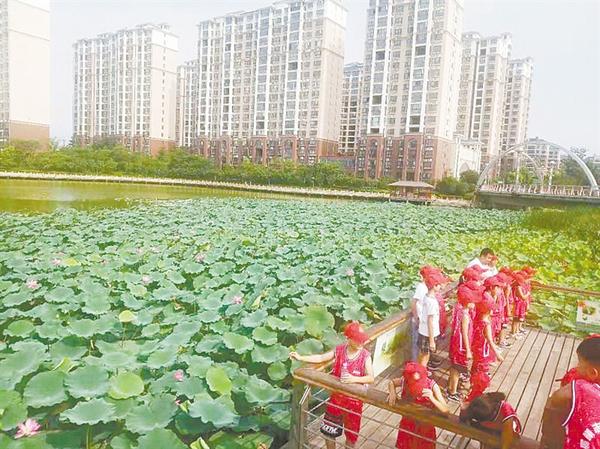 走出新时代文明实践中心,在志愿服务队叔叔阿姨的陪伴下,留守儿童们欣赏了湿地公园的美景,河岸杨柳依依、青草嫩绿,河内碧波荡漾、香蒲摇曳,荷花亭亭玉立,蓝绿交融的美丽画卷令孩子们陶醉不已。