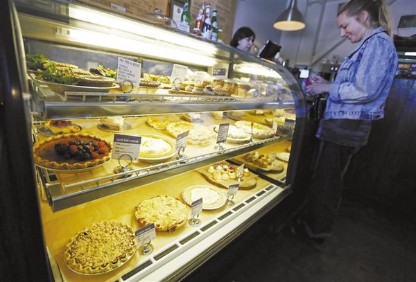 8月29日,在美国洛杉矶一家派店,一名顾客在选购。