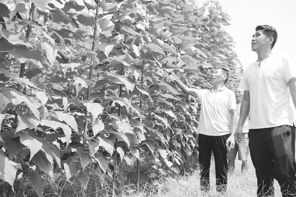 8月31日,商水县平店乡雒庄村种植大户李新红等人查看速生观光楸树生长情况。每亩地投资3000元至5000元,楸树苗能种植3万棵,一年能收入3万元;成树能种植1200棵至1300棵,一年能收入2.5万元至2.8万元。近年来,该县各级党委和政府大力发展绿色生态、高产高效特色种植业,有效促进了农业增产、农民增收、农村稳定。