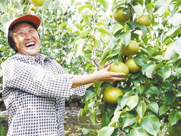 “七月葡萄八月梨,九月柿子来赶集”。目前,正值鲜梨采摘季,梨农在梨园里忙着摘梨,各地的采购商也忙着上门收购。近年来,沈丘县大力发展生态采摘经济,打造一批林果生产基地、观光采摘园、生态游览园等,在美化环境的同时,增加农民收入。图为在该县北杨集镇吕寨村一处梨园里,梨农正忙着采摘,脸上露出丰收的喜悦。记者 韦伟 摄