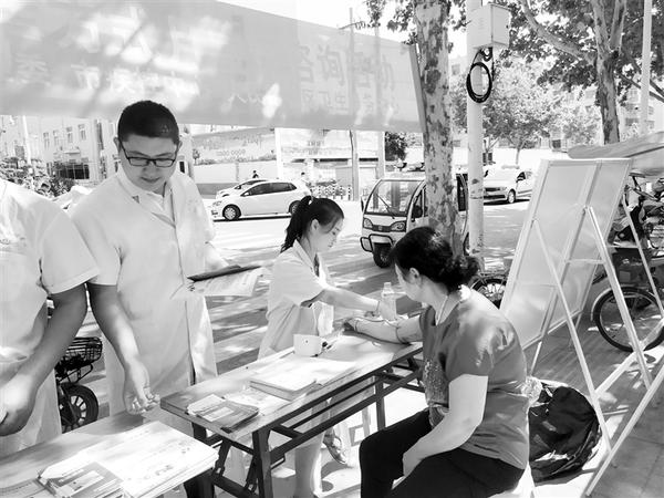 今年9月1日是第13个全民健康生活方式日,为增强全民健康意识、普及健康生活方式,当天,市疾控中心在人民路开展全民健康生活方式日宣传咨询活动。医务人员现场为群众量血压,并进行健康知识宣传,受到群众的一致好评。记者 孙艳 摄