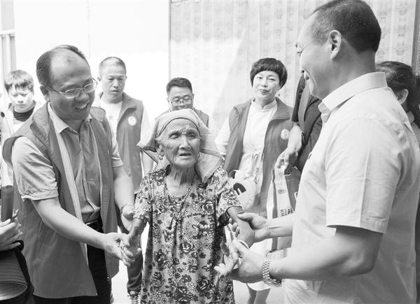本报讯 (记者 黄佳) 百岁老人是家庭和社会的宝贵财富,爱老敬老是中华民族的传统美德。9月5日是“中华慈善日”,周口市啄木鸟志愿者服务工作委员会、周口日报社驻西华记者站联合爱心商家大富城地产、于小果糕点店、巴马活泉周口总代理、东方金博女装店等,发起“弘扬孝道文化、关爱百岁老人”活动,为寿星们送上诚挚的祝福。