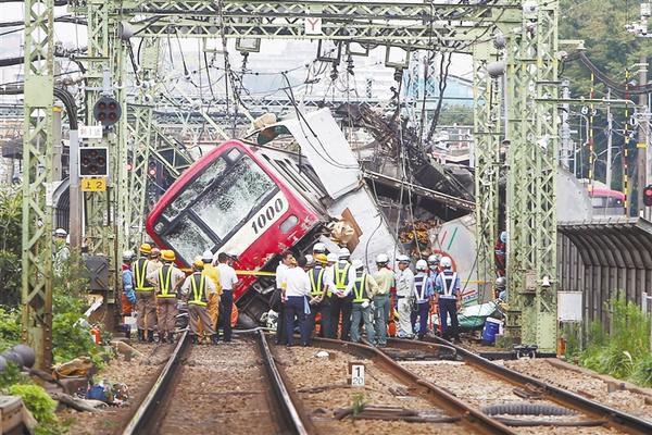 这是9月5日在日本神奈川县横滨市拍摄的事故现场。日本神奈川县横滨市5日上午发生一起特快电车与卡车相撞事故,目前已造成1名男性死亡、34人受伤。新华社记者 马曹冉 摄