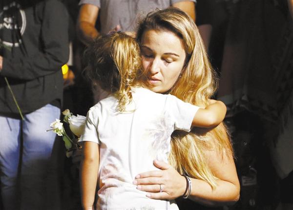 9月5日,在美国洛杉矶圣莫尼卡海滩,一名小女孩和母亲在悼念活动上拥抱。美国加利福尼亚州圣巴巴拉县官员5日表示,美国加州游船失火事故已确认34人死亡。目前事故原因正在调查中。新华社发