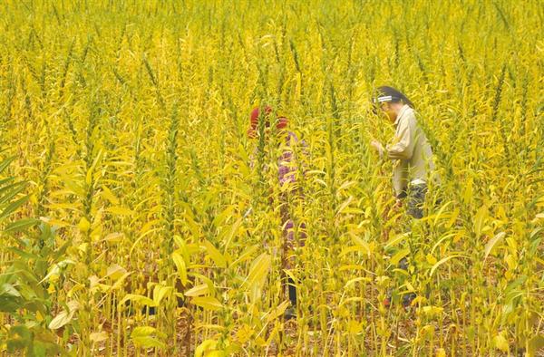 近年来,商水县魏集镇积极进行农业供给侧结构性改革,大力调整种植结构,帮助农民通过特色种植走上脱贫致富之路。图为9月13日下午,商水县魏集镇农民采收优质芝麻。记者 付永奇 摄