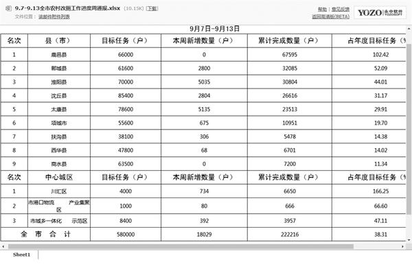 全市农村改厕工作进度周通报