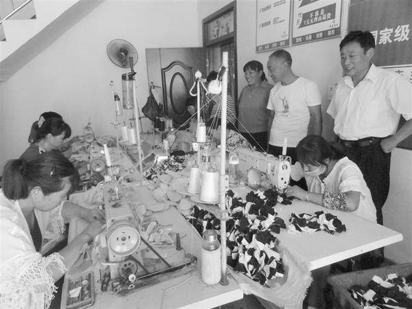 9月17日,商水县舒庄乡杜店村留守妇女在一个家庭式服装加工点加工服装。为方便留守妇女家门口就业,该乡通过30多个服装厂、玩具厂在29个行政村开设60个服装、玩具加工点,3000多名留守妇女不出村就可打工挣钱。