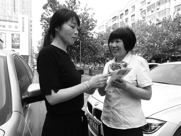 近日,农行周口分行组织员工利用下班、节假日和双休日时间,携带折叠桌椅、宣传折页和条幅,到小区、停车场等车辆、人员集聚区域,宣传、安装ETC设备,为客户提供上门服务,深受客户欢迎。图为9月13日,农行西城支行营业部工作人员在五一路附近,向过往群众宣传安装ETC设备的好处。记者 王朝辉 摄