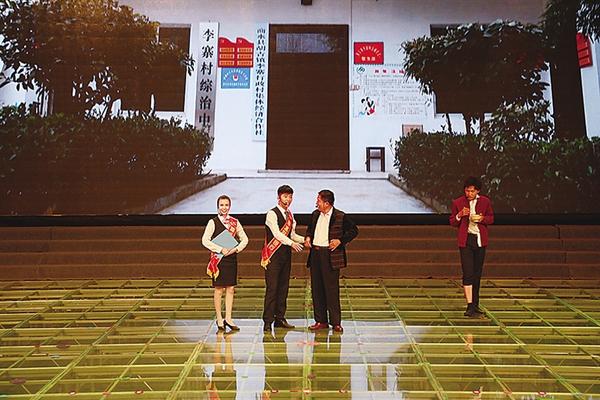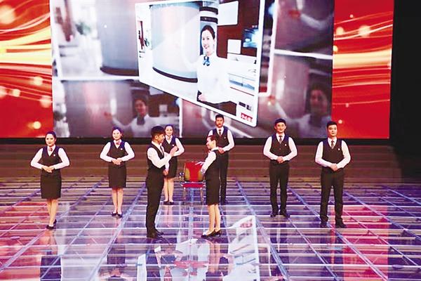 在市委第六巡回指导组组长、市人大常委会民族侨务外事委员会主任李华为一等奖获得者、周口农商银行选手张峻源颁发荣誉证书和奖杯后,与会嘉宾、选手、全场观众起立,齐唱《我和我的祖国》。