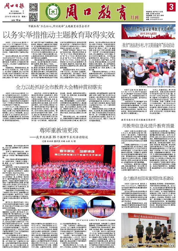 本报讯 (记者 张洪涛 通讯员 安稳) 9月20日,周口教育大讲堂(第八期)在周口一高礼堂举行。市教体局党组书记张建梁出席,市政府督学、市教体局党组成员张学伟主持,中国教育技术协会学术委员会常务副主任刘雍潜主讲。