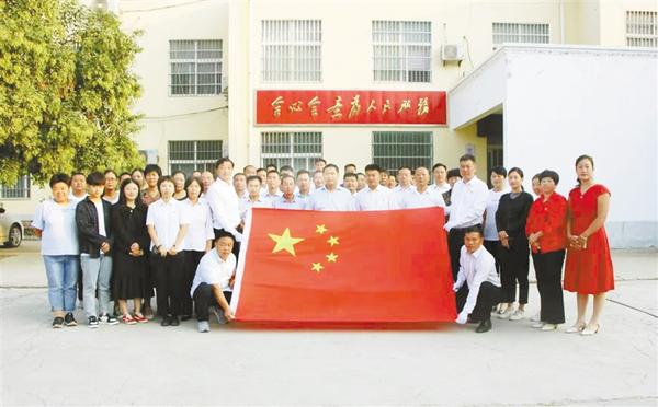 10月1日,老冢镇举行“升国旗、迎国庆”活动,镇领导班子成员及全体机关干部参加升国旗仪式。图为大家在现场合影留念。 记者 马治卫 摄