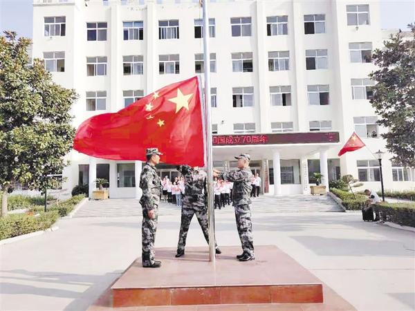 近年来,郸城城市变美了,群众的幸福指数飙升,脱贫致富了,甩掉了贫困县的帽子……国庆期间,城区处处可见“国旗红”,一面面迎风飘扬的国旗,营造出浓浓的爱国主义氛围。国庆当天,郸城县各级各部门结合“不忘初心、牢记使命”主题教育,积极开展升国旗(如图)、唱国歌、重温入党誓词活动,并组织人员集中收看新中国成立70周年庆祝活动直播,让广大党员群众实实在在看到、真真切切感受到在伟大、光荣、正确的中国共产党坚强领导下,新中国建设发展走过的70年辉煌历程,人民军队现代化建设取得的历史性成就,激发大家的爱国主义情怀,增强大家的民族自豪感,激励全县广大党员干部群众更加紧密地团结在以习近平同志为核心的党中央周围,紧跟县委决策部署,不忘初心、牢记使命,奋力谱写新时代创新、开放、文化、教育、平安、美丽“六个郸城”华彩篇章。②7