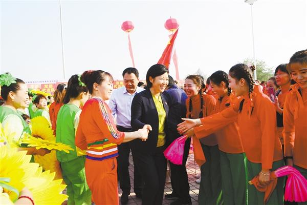 本报讯 (记者 徐松 文/图) 庄稼老汉扔下锄头,解放双手,挎起腰鼓,敲起《锦绣前程》;农家老太离开锅台,解掉围裙,换上舞服,跳起《我和我的祖国》……9月26日,郸城县广场舞大赛在县世纪广场拉开帷幕。县委书记罗文阁、县长李全林带领县四个班子领导前来助阵喝彩(如图)。舞蹈队员是谁?他们来自23个乡镇办的农民舞蹈队,是抡了一辈子锄头的庄稼老汉和围着锅台转的农家老太。