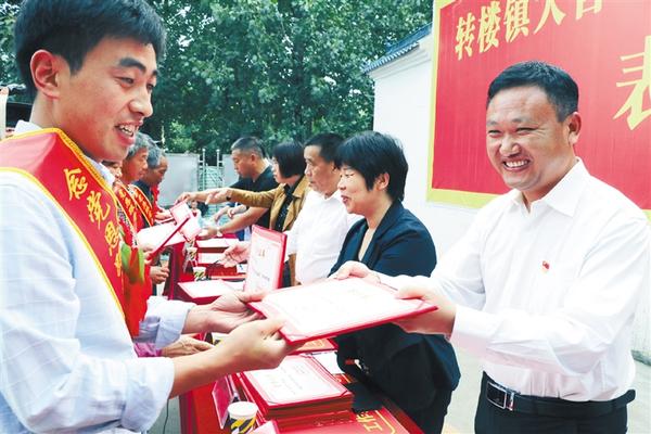 10月2日,太康县转楼镇荣获“产业富民致富星”等称号的“十星农户”高兴地领奖。为破解农村管理难题,巩固“六村共建”成果,国庆节期间,太康县转楼镇组织开展了“念党恩跟党走忠诚星”“产业富民致富星”“清洁家园卫生星”等“十星农户”评选活动,取得了良好的社会效果。 记者 马治卫 通讯员 王青俊 摄