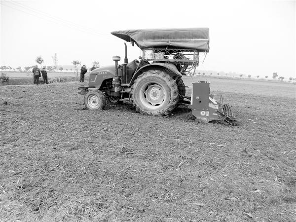 10月11日,沈丘县付井镇王营村一台大型旋耕机在整地。连日来,该县抓住墒情好的有利时机,积极组织大型机械,抓紧进行机耕,切实做到机耕机耙相结合,深耕细耙,确保耙透、耙实、耙平、耙细,提高整地质量,为该县100余万亩小麦播种打下了良好基础。