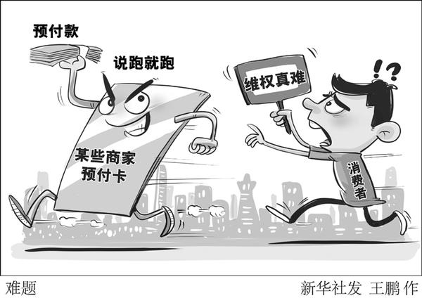 “我的钱还能要回来吗?”这是绝大多数手持预付卡的消费者在遇到老板“跑路”时的第一反应。预付消费,这个商业模式因为“跑路”乱象备受质疑。维权成本高、监管存盲区、“跑路”处罚轻……预付消费如何实现其健康发展? 新华社发