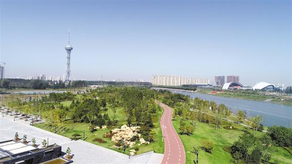 据了解,沙颍河公园一期总投资19.3亿元,西起周口大道,东至武盛大道,全长5.5公里,建设内容主要是景观工程、堤防工程、河道护砌工程、道路工程。南北两岸景观总面积211公顷,其中绿化面积172公顷,硬化面积39公顷,绿地率81.5%,单侧景观最宽处500米,最窄处100米,栽植各种乔木、灌木、应季花草、草皮等,实现三季有花、四季常青。