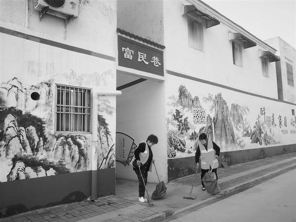 韩营居委会党支部书记徐波告诉记者,“创卫”以来,韩营居委会共粉刷墙壁7.8万多平方米,制作文化墙千余米,文化墙不仅是墙体装饰,每一幅画还蕴含着积极向上的社会主义新风尚内容,很受居民欢迎。