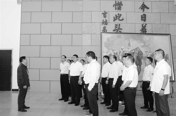 近日,农行周口分行通过多种形式,广泛开展“不忘初心、牢记使命”主题教育。该行党员通过学原文、读原著、悟原理,不断加深对习近平新时代中国特色社会主义思想的理解,不断增强“四个意识”、坚定“四个自信”、做到“两个维护”,明确“服务三农”的初心,提升干事创业的能力。图为该行党委书记、行长李正玉,带领党委班子成员、各部室主要负责人等到吉鸿昌将军纪念馆接受红色教育。