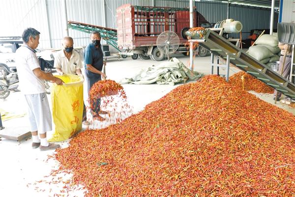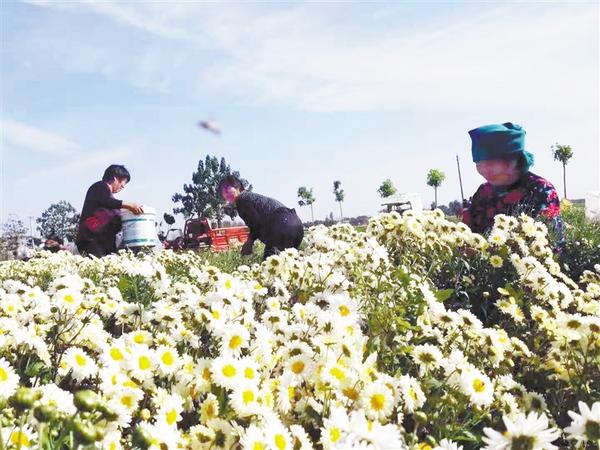 与高集乡不同的是,宋河镇、穆店乡等乡镇近几年通过大力发展“红黄”(小辣椒、菊花、烟叶)经济,在产业种植方面也走出了一条特色之路。高建民是宋河镇张辛行政村的党支部书记,同时也是全村率先开展菊花深加工的能人。他说,经过烘干的皇菊每公斤可以卖到300元左右,按每亩地产150公斤干菊花算,毛利润就是4.5万元。