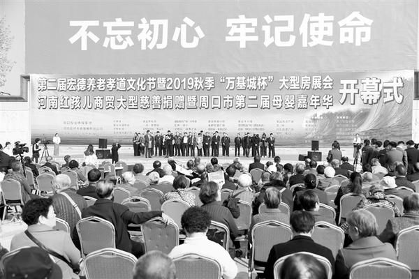 10月18日上午,由周口报业传媒集团、河南宏德养老发展有限公司、河南红孩儿商贸有限公司共同主办的第二届宏德养老孝道文化节暨2019秋季“万基城杯”大型房展会、河南红孩儿商贸大型慈善捐赠暨周口市第二届母婴嘉年华活动在五一文化广场举行。