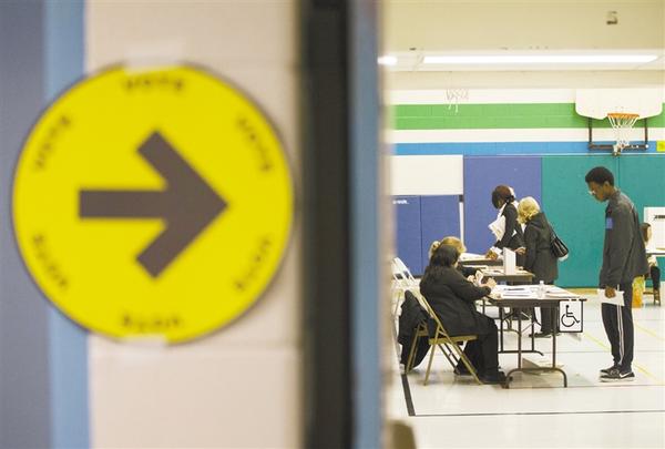 10月21日,在加拿大多伦多,选民在一个投票站投票。