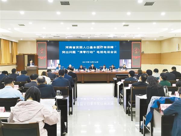 本报讯 (记者 徐松 通讯员 刘志刚 文/图) 10月16日上午,河南省贫困人口基本医疗有保障突出问题“清零行动”电视电话会议在省卫健委召开。会议深入贯彻习近平总书记关于扶贫工作的重要论述和解决“两不愁三保障”突出问题座谈会精神,全面落实全省脱贫攻坚第七次推进会工作部署,总结交流各地各部门健康扶贫工作经验,安排部署推进全面解决全省贫困人口基本医疗有保障突出问题“清零行动”专项工作,坚决打好打赢全省健康扶贫攻坚战。郸城县县委书记罗文阁在会上作典型发言(如图)。