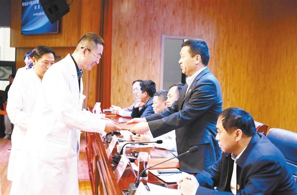 县中医院党支部书记刘同军宣读创“三级”医院号召书,号召全院干部职工统一思想,提高认识,加大工作力度,同心协力,从细节做起。全院领导班子、各科室负责人要把责任落实到人,全院职工要从自我岗位做起,坚决克服懈怠思想,以主人翁的姿态把创建工作扎扎实实落实到位,克服一切困难,顺利通过评审工作。