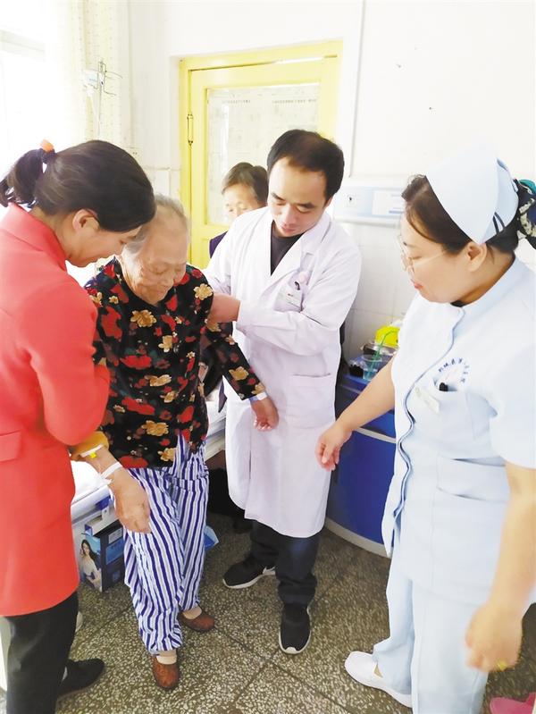 本报讯 (记者 徐松 通讯员 张海鹰 李淑华 杨梦娟 文/图) 从10月15日入院治疗至10月19日下床行走,郸城县吴台镇孙楼行政村百岁老人杨氏在县第二人民医院骨一科经历了有惊无险、转危为安的惊心历程。