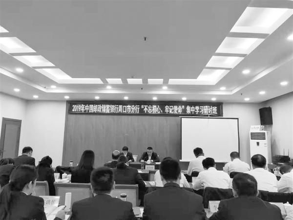 本报讯(记者 韩志刚 通讯员 李锦智 文/图)10月8日至12日,为认真落实中央及上级行党委“不忘初心、牢记使命”主题教育要求,确保主题教育扎实有效开展,邮储银行周口市分行党委组织开展“不忘初心、牢记使命”主题教育集中学习研讨(如图)。该行党委班子成员、三级副及以上党员干部、各党支部书记、市分行各部门负责人、各县(市)支行班子成员等共46人参加了会议。