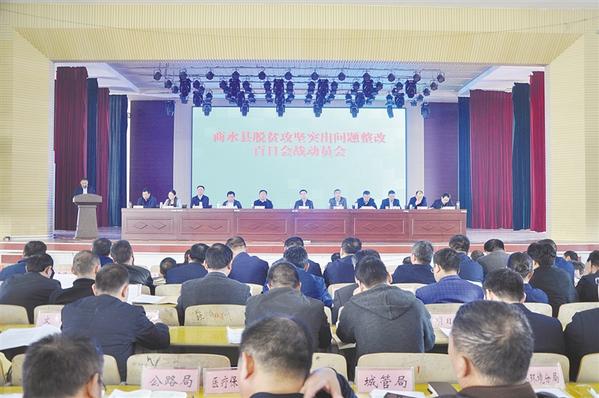 县委副书记、政法委书记张峰对全县脱贫攻坚工作进行了全面总结,分析了面临的形势和存在的问题,并对脱贫攻坚突出问题整改百日会战具体工作进行了部署。