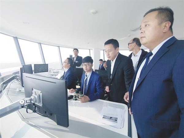 图片分别是工作人员正在塔台指挥飞机,停机坪上的飞机。