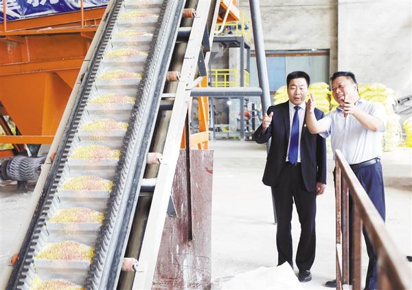 周口农商银行行长盛毅深入化肥农企查看生产情况。 汪倩 摄