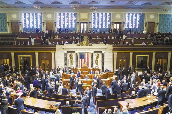 10月31日,在美国华盛顿,美国国会众议长佩洛西(后中)主持针对总统特朗普进行弹劾调查程序的决议案投票。美国国会众议院10月31日以232票赞成、196票反对的表决结果,通过一项针对总统特朗普的弹劾调查程序的决议案。这是众议院首次就这一弹劾调查举行正式投票。新华社发