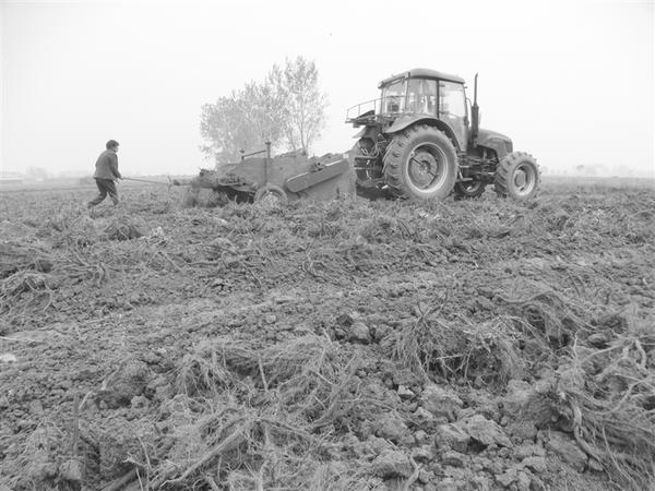 11月3日,在沈丘县周营镇欧营村一处订单生态中药材基地,当地药农忙着用机械采收药材丹参。近年来,该镇瞄准中药材种植、加工扶贫新路子,发展艾草、黄精、丹参等优质中药材种植面积3000余亩,让中药材成为当地贫困户的“绿色银行”。