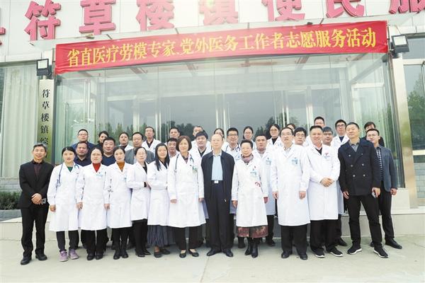 11月1日,省医疗劳模专家、党外医务工作者到太康县符草楼镇皇王村开展义诊志愿者服务活动,让群众在家门口享受优质的医疗服务。图为省医疗劳模专家与有关领导合影留念。