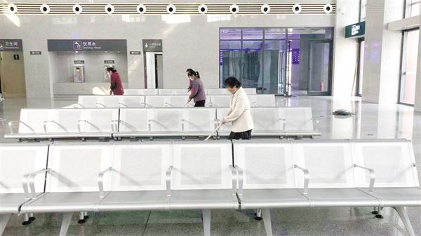 郑阜高铁通车在即,扶沟南站工作人员加紧做好开通前各项准备工作。图一为扶沟南站外景,图二为工作人员正在打扫站区卫生。