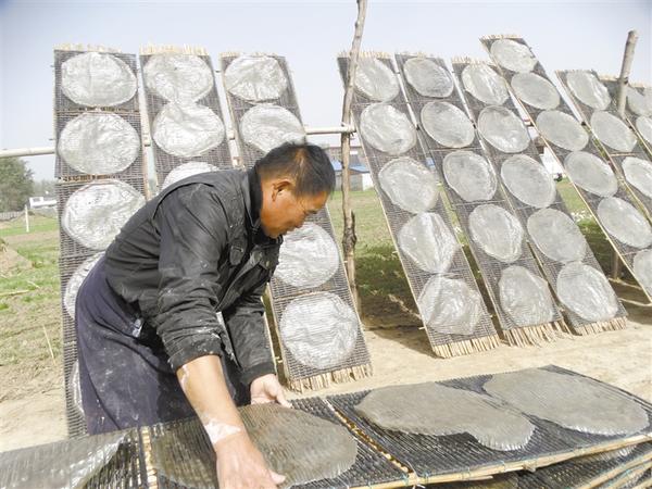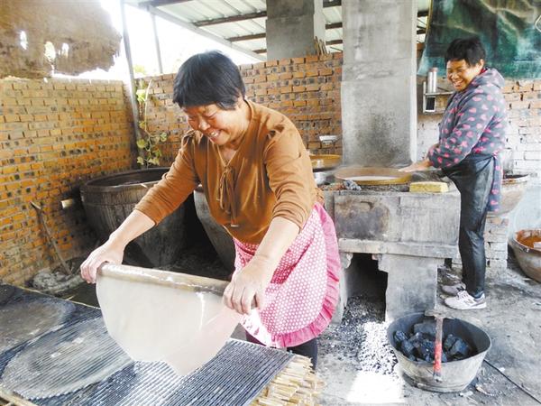 近日,沈丘县付井镇杨庄村村民正忙着加工晾晒订单红薯粉皮。杨庄村是远近闻名的粉皮加工专业村,入秋以来,当地村民纷纷利用自产红薯加工手工粉皮。该村手工粉皮口感佳、味道鲜,颇受群众欢迎,不少村民依靠加工粉皮增收致富。 记者韦伟 摄