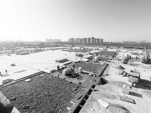 11月14日上午,郑阜高铁周口东站站前广场正在加紧施工中。目前,站前广场的地面铺设、排水、绿化等工程同时赶工,确保郑阜高铁开通前能让市民眼前一亮。记者 牛思光 摄