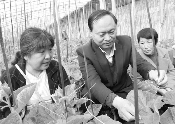 11月17日,周口职业技术学院副教授李民(中)在蔬菜大棚内为农民讲解黄瓜栽培技术。该院农牧工程学院把100多名参加农民教育培训的学员从课堂带到蔬菜大棚,现场解决他们在生产中遇到的疑难问题。培训过程中,学员既增长了实用知识,观摩了新的蔬菜品种和种植模式,又结识了蔬菜采购客户,纷纷表示收获满满。谷志方 摄