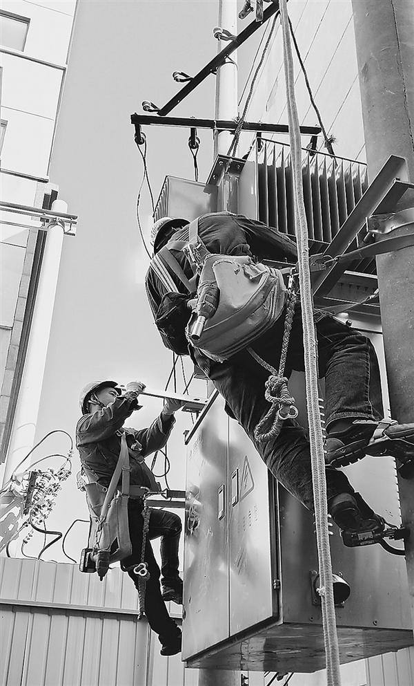 本报讯(记者 张志新 文/图 ) “两台变压器合并成一台大变压器后,不但消除了新办公区整修改造中的安全隐患,还有效增强了居民区的供电能力,这是一举两得的好事,非常感谢。”11月15日一大早,周口供电公司四五名工作人员,开着大型吊车,带着变压器来到市应急管理局新办公区整修改造工地,将新办公区内原来的两台变压器合并为一台400千伏的变压器。